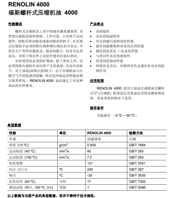 福斯螺杆式压缩机油4000