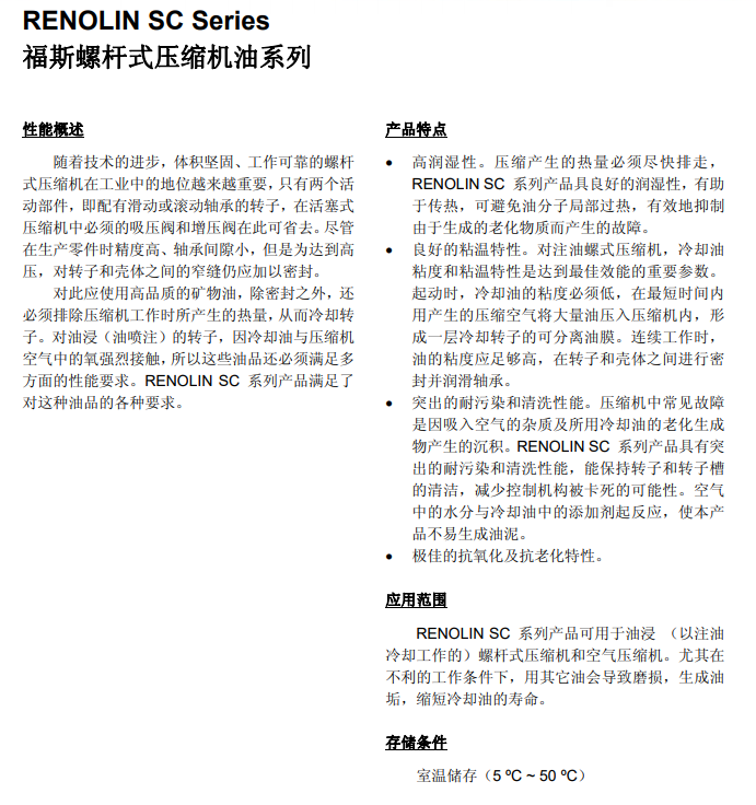 福斯螺杆式压缩机油系列