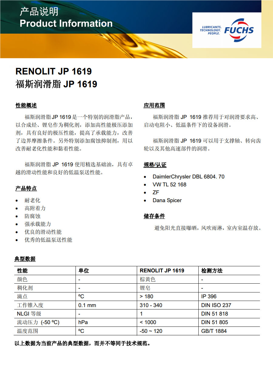 福斯润滑脂JP 1619