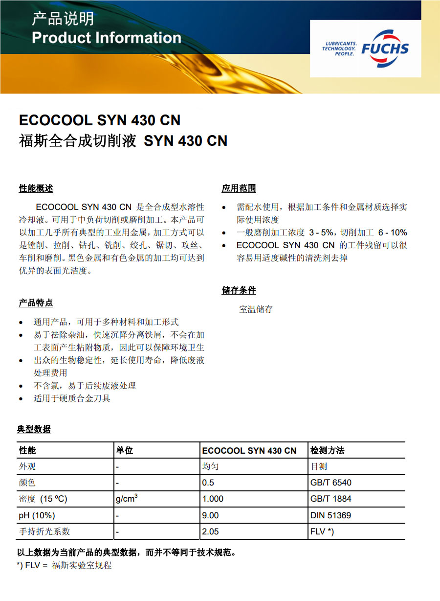 福斯全合成切削液 SYN 430 CN