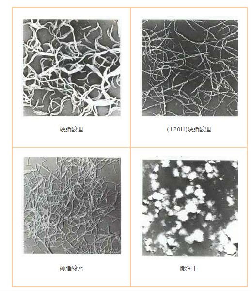 用电子显微镜(倍率:×104)看到的润滑脂的稠化剂纤维构造。